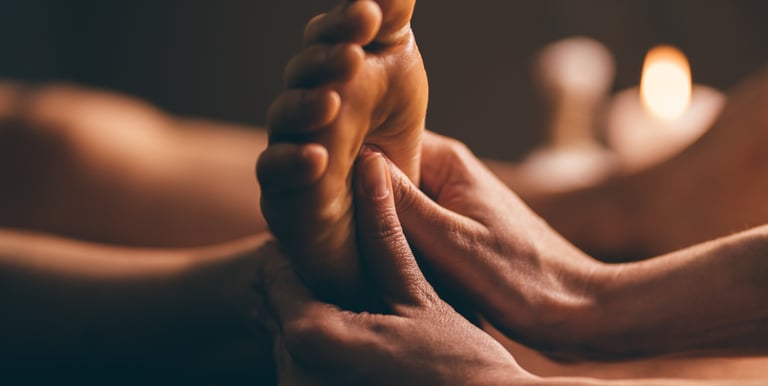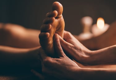 Estimulação de pontos nos pés que refletem órgãos e sistemas do corpo. Ajuda a aliviar dores, regular funções e promover equilíbrio geral.